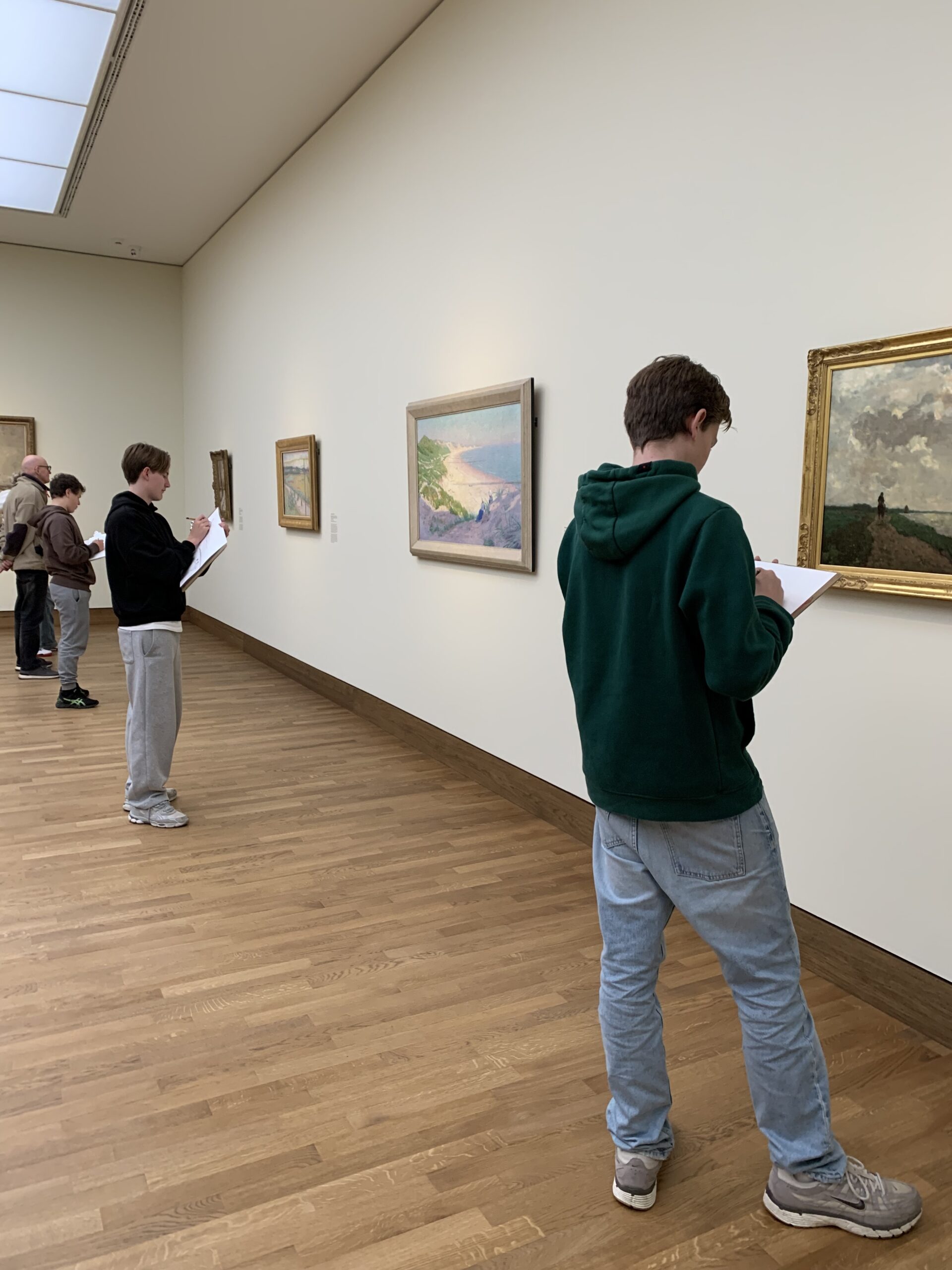 De afgelopen weken brachten leerlingen uit 3 mavo en 4 havo met het vak CKV een bezoek aan het Singer museum in Laren. Tijdens de rondleiding bekeken ze verschillende kunstwerken en kozen ze er één uit om ‘op zaal’ na te tekenen – een oefening in goed kijken en echt zien.