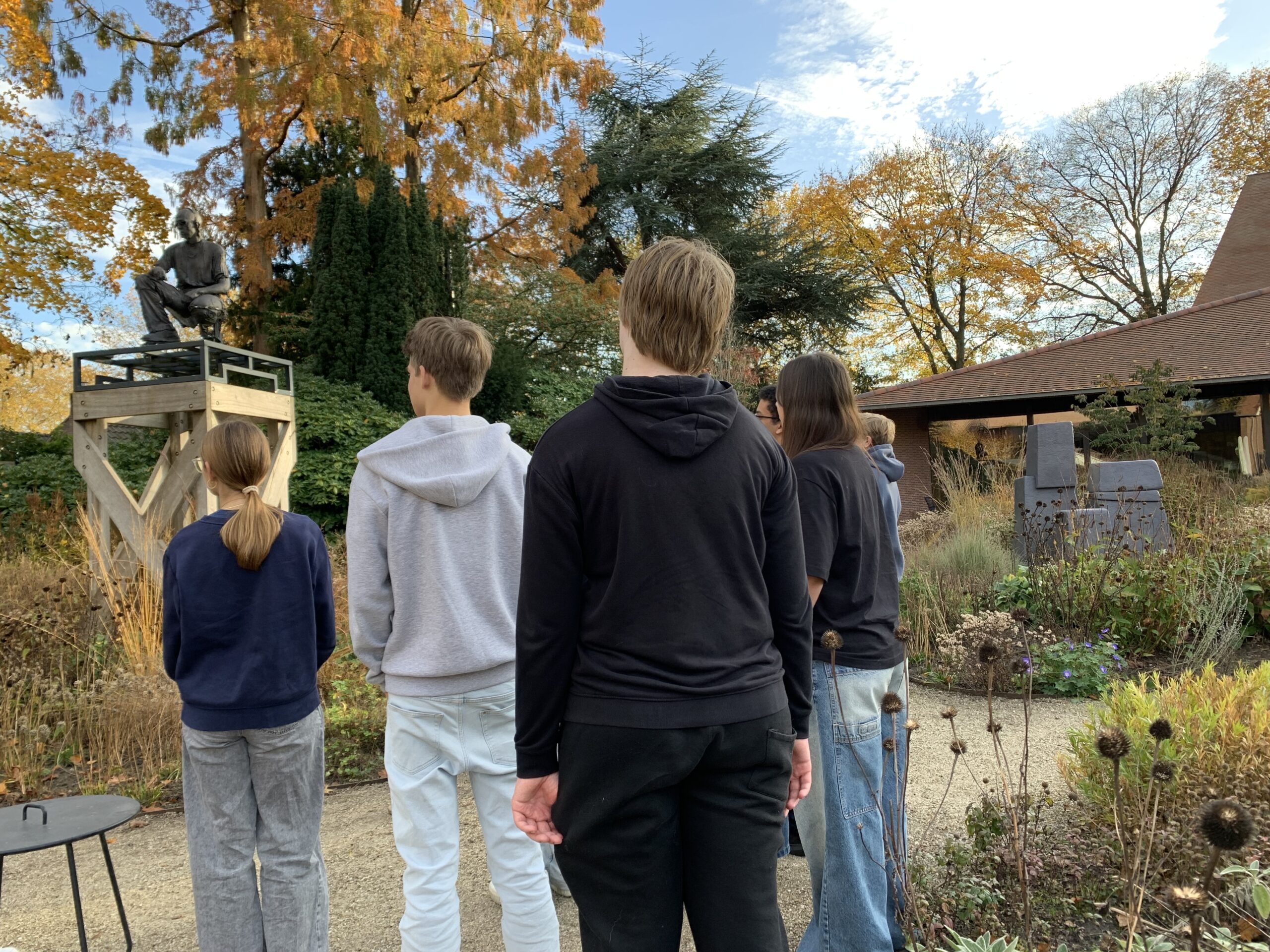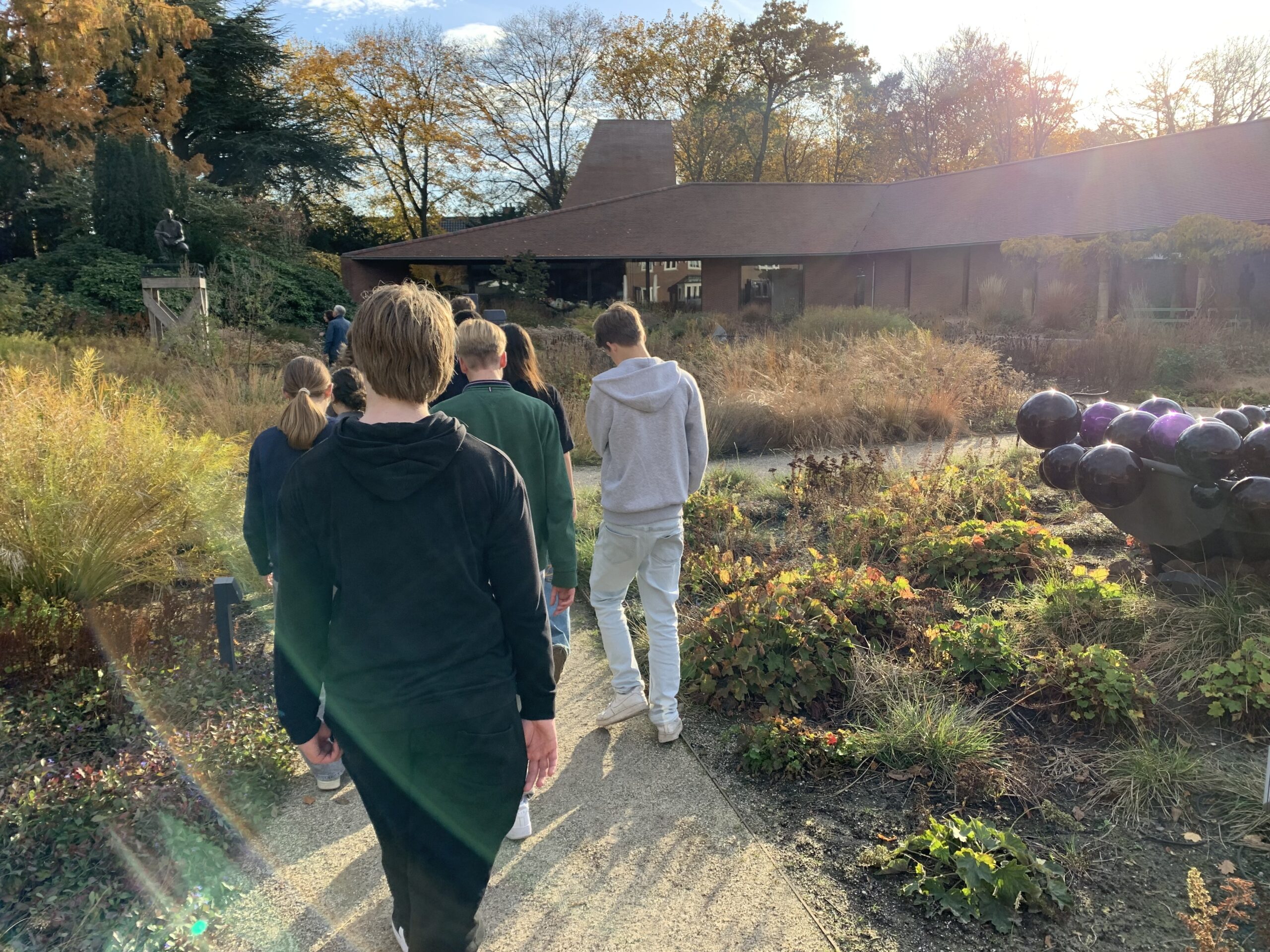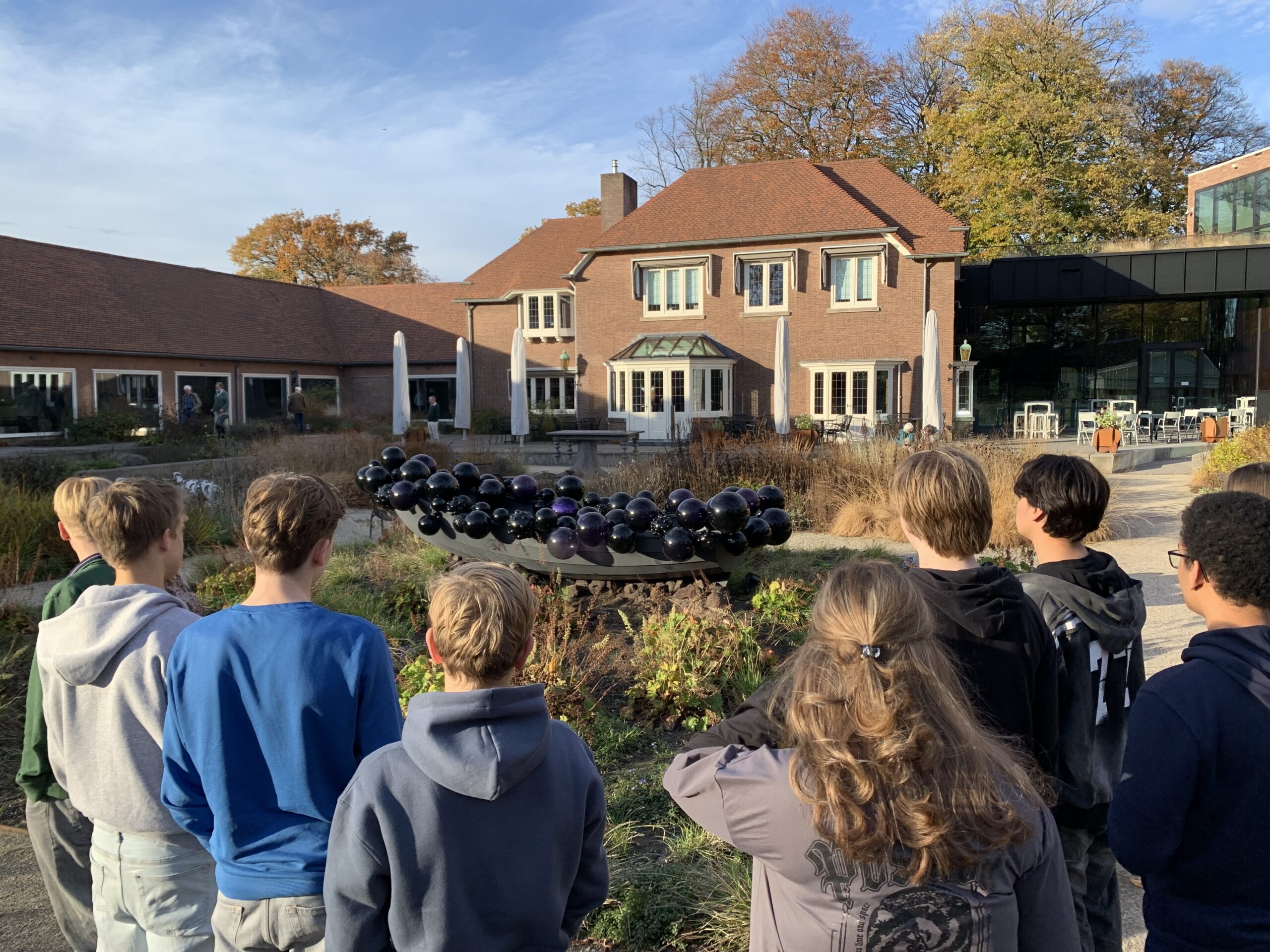 Woensdag mochten we zelfs even onder het genot van een  herfstzonnetje de beeldentuin in, waar moderne beelden tussen het groen staan en kunst letterlijk in de natuur opgaat. Een geslaagde middag vol aandacht voor kunst
