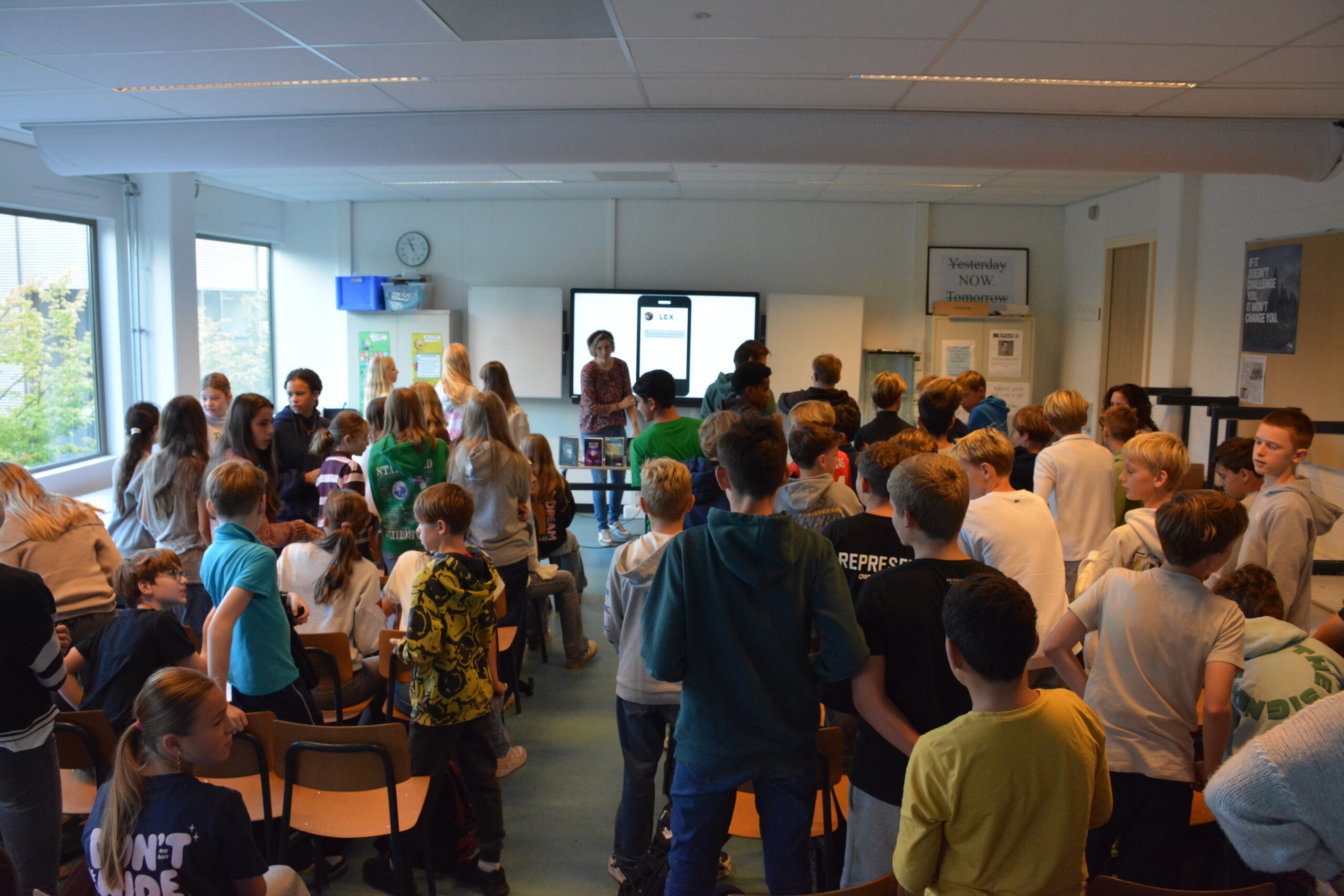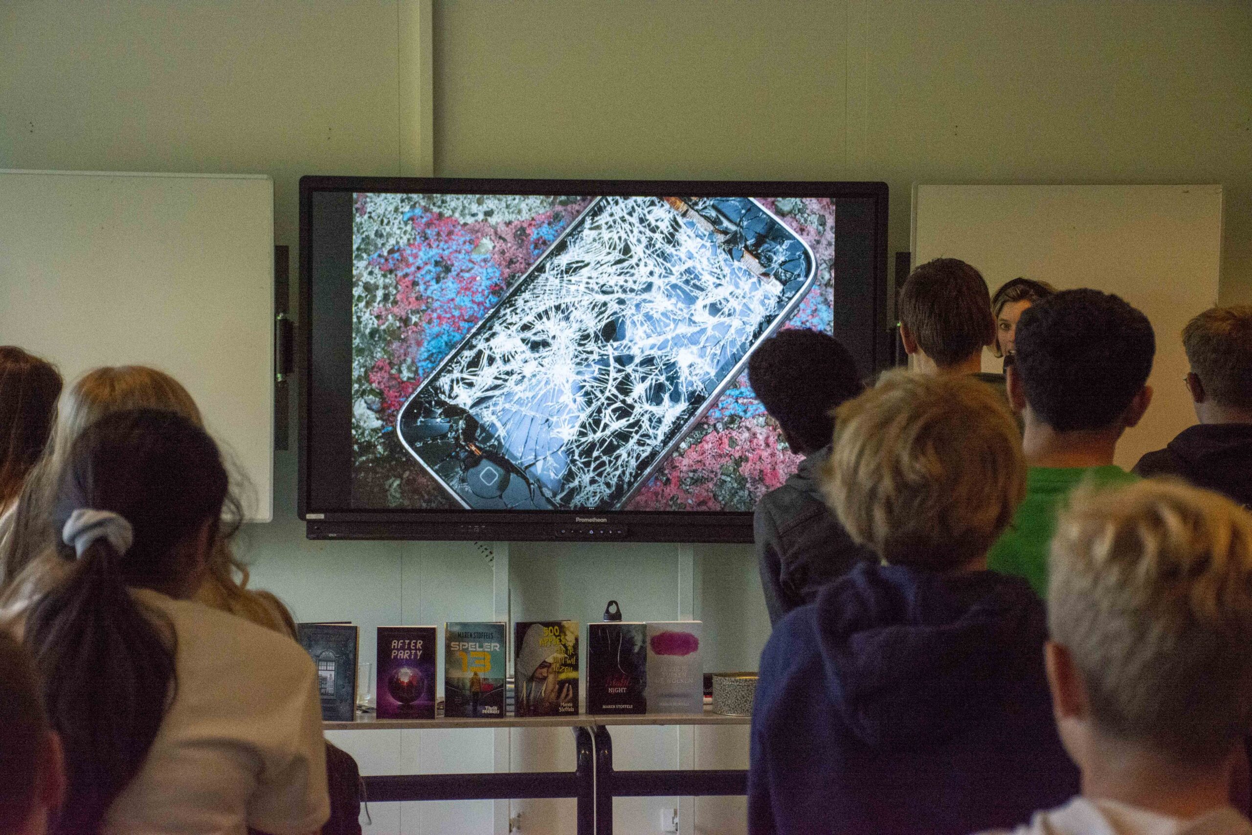 De leerlingen mochten zelf ervaren hoe het spel Container Cash – dat een belangrijke rol speelt in het boek – werkt. Drie dappere leerlingen stapten naar voren om het spel te spelen en kregen direct te maken met de spannende consequenties van hun keuzes.